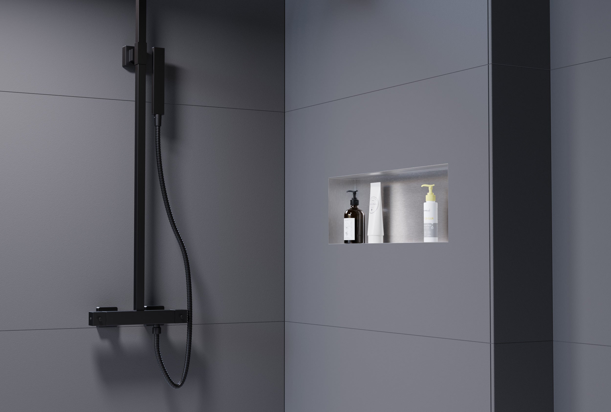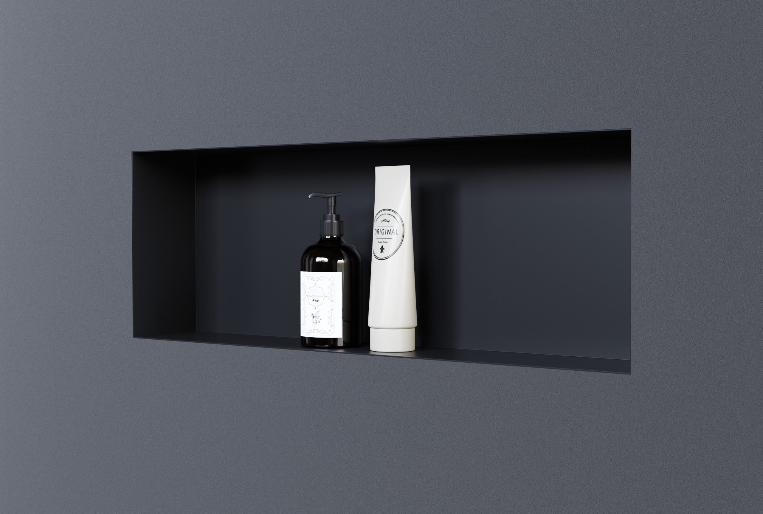 Diese randlose Wandnische aus Edelstahl bieten wir Ihnen in den Farben Edelstahl gebürstet, Weiß, Schwarz und Gunmetal an. Gunmetal ist ein metallener Farbton, dessen Oberfläche dunkelgrau gebürstet erscheint. Die BERNSTEIN Wandnischen werden wasserdicht verbaut – die Installation ist unkompliziert.