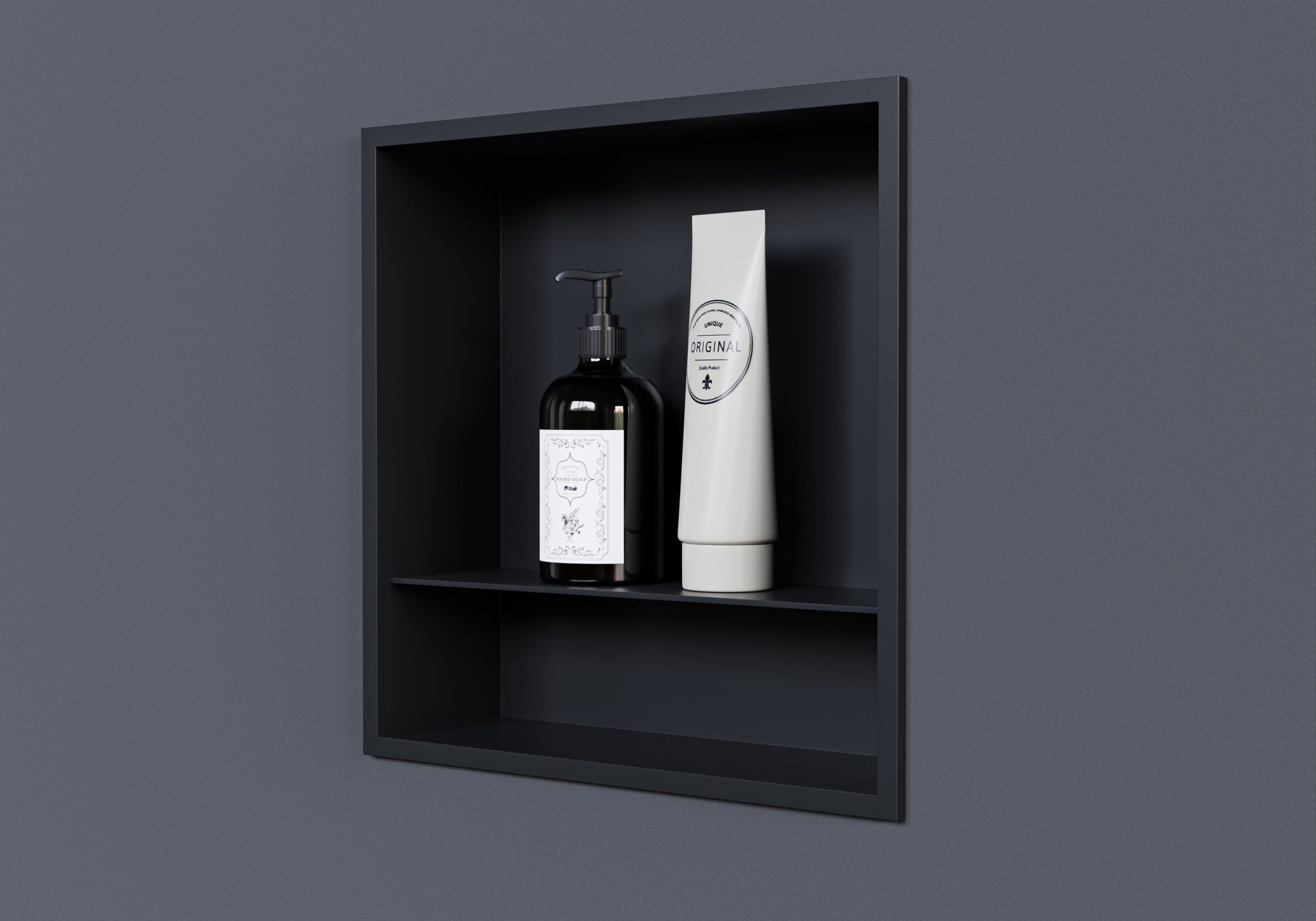 Die BERNSTEIN Wandnischen werden wasserdicht verbaut – die Installation ist unkompliziert. Die Wandnische ist in diversen Farben über die Artikelvariante wählbar, u. a. auch in Gunmetal. Dies ist ein metallener Farbton, dessen Oberfläche dunkelgrau gebürstet erscheint.