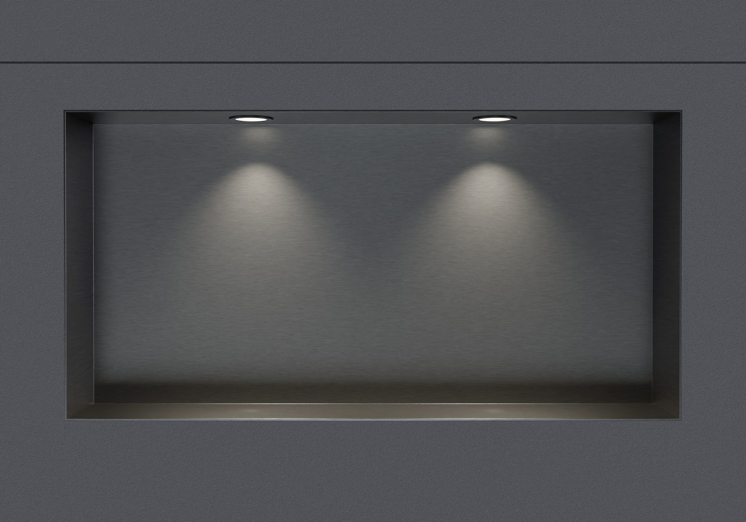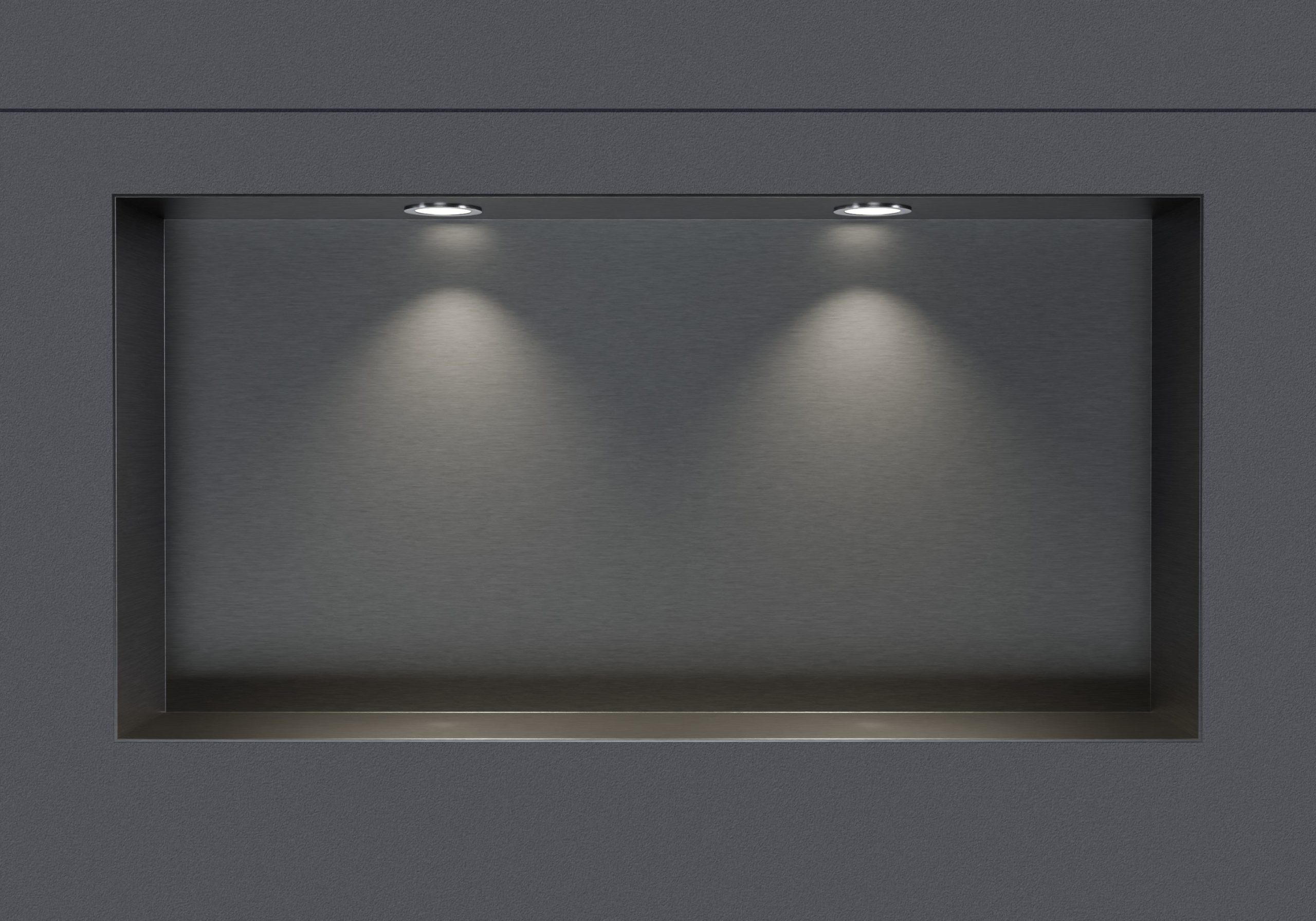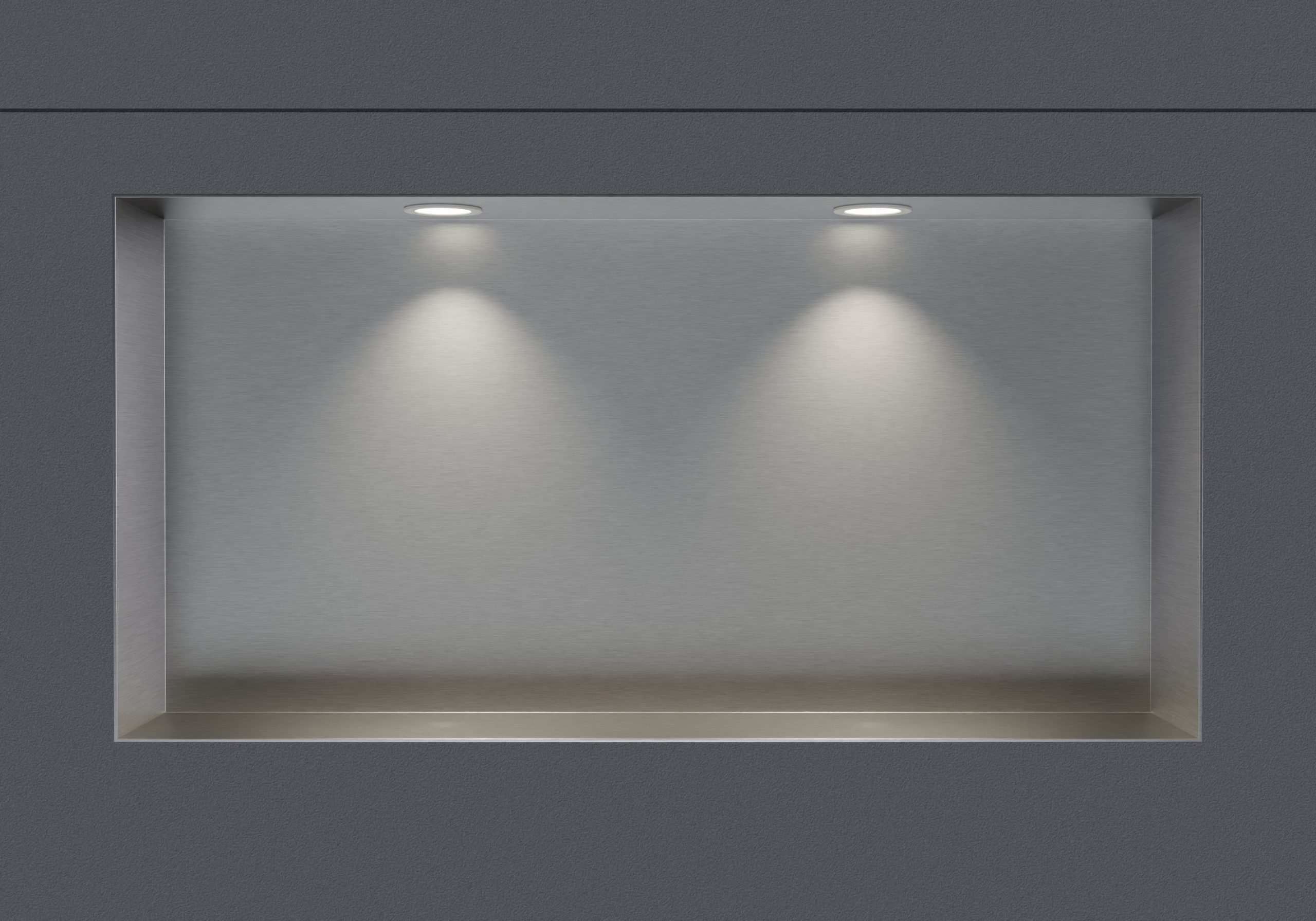 - Randlose Wandnische aus Edelstahl inkl. 2x LED-Spot