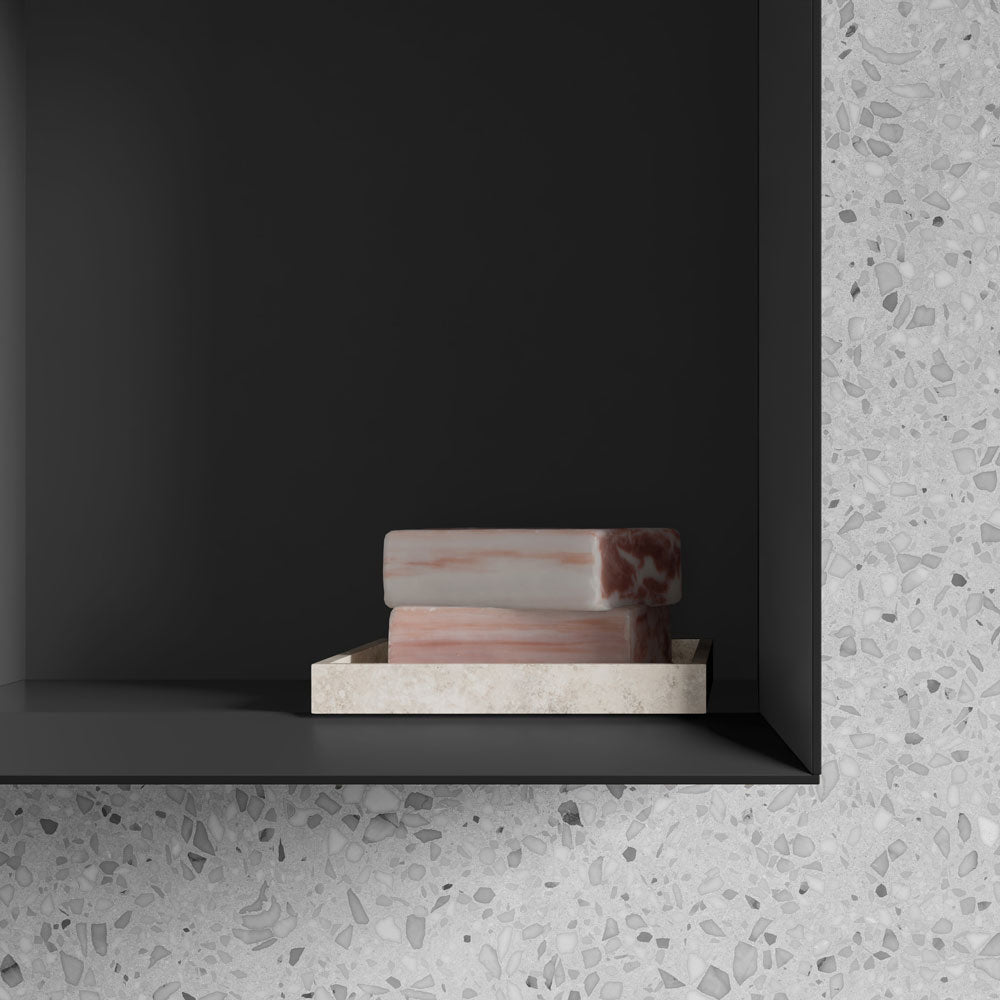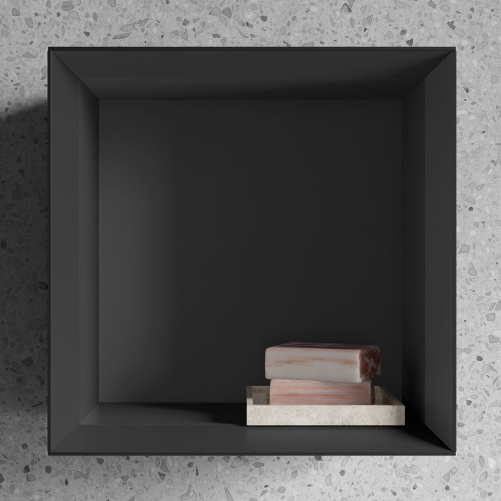 Badmöbel-Serie ARCTIC ✓ Wandregal ✓ Elegantes Schwarz/Anthrazit ✓ Lackierte Oberfläche ✓ 32x32cm ✓ Vormontiert