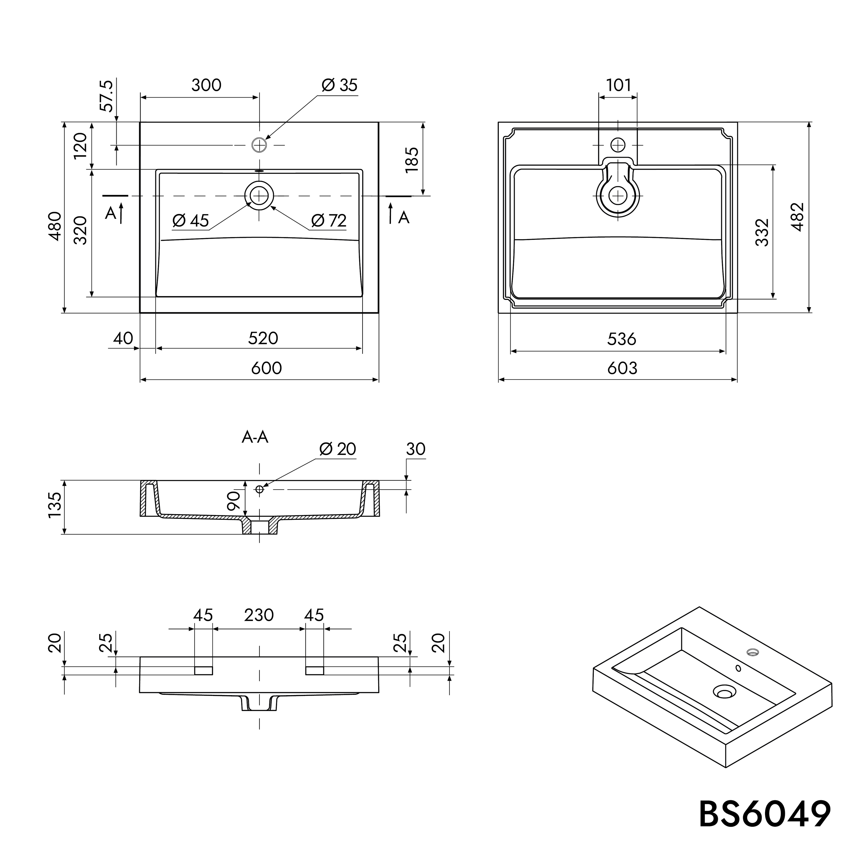 Wandwaschbecken / Aufsatzwaschbecken BS6049 aus Gussmarmor