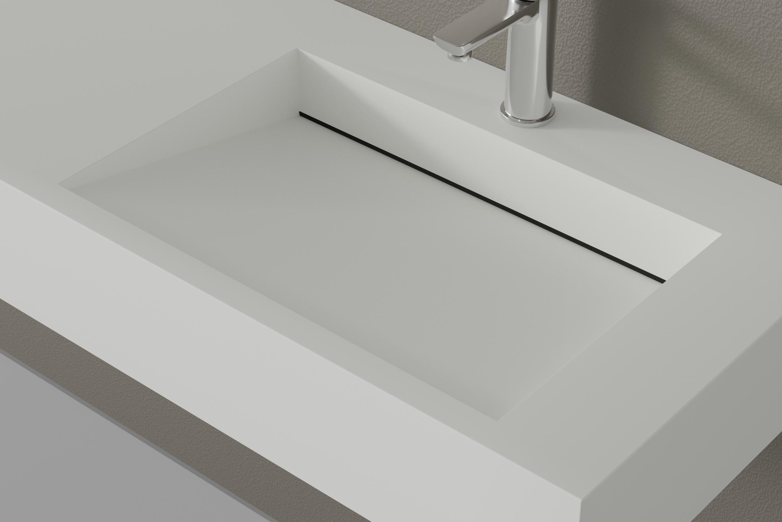 Die abgeschrägte Ablauffläche und der unsichtbare Abfluss verleihen diesem Doppelwaschbecken TWG16 sein modernes Design. Das TWG16 ist aus hochwertigem Mineralguss Solid Stone hergestellt und wird in den Farben Weiß matt, Grau matt, Quarz Grau und Quarz Schwarz angeboten. Die Oberfläche der Farben Quarz Grau und Quarz Schwarz weisen eine edle Quarzsand-Beschichtung auf. Ihre Oberfläche erscheint in einem matten Kristallglanz und zeichnet sich durch eine extrem hohe Kratzfestigkeit und hygienisch saubere Oberfläche aus. Die Beschichtung verhindert außerdem unschöne Flecken beim Abfließen des Wassers. Die Waschbecken in Weiß matt und Grau matt sind mit einer Gel-Coat-Beschichtung gefertigt, die glatt, porenlos und somit hygienisch ist.