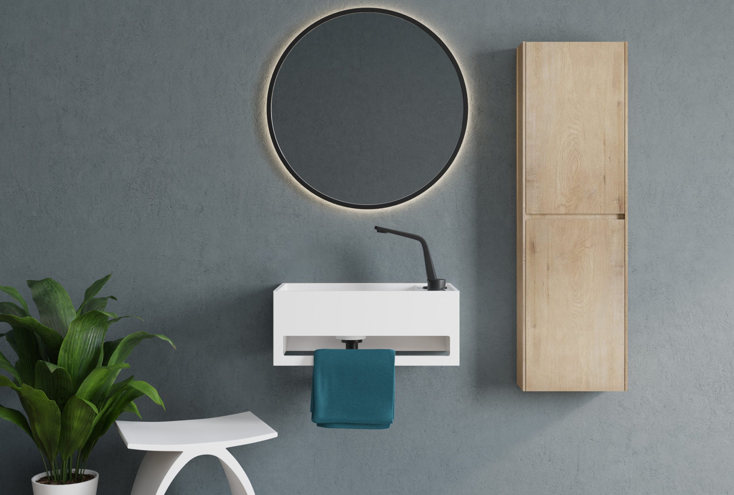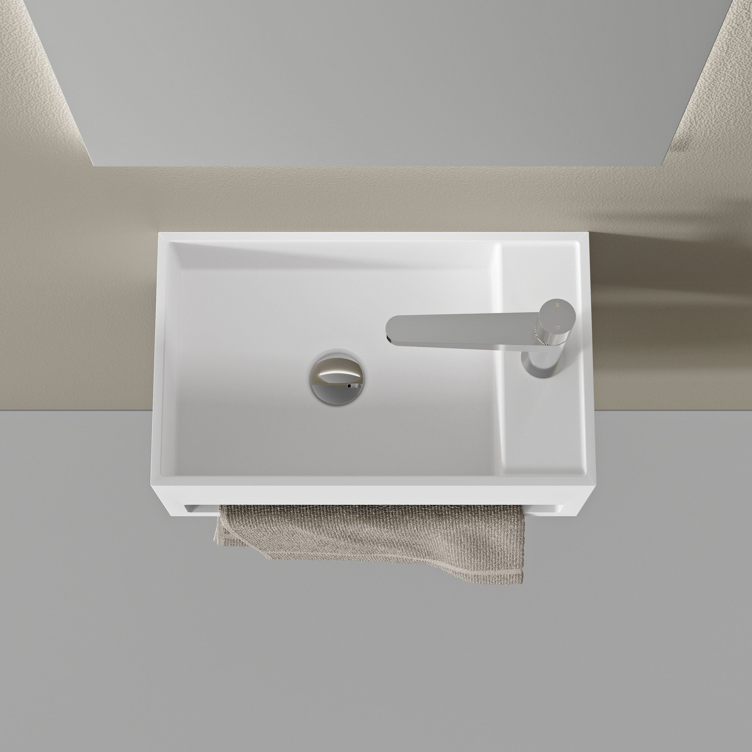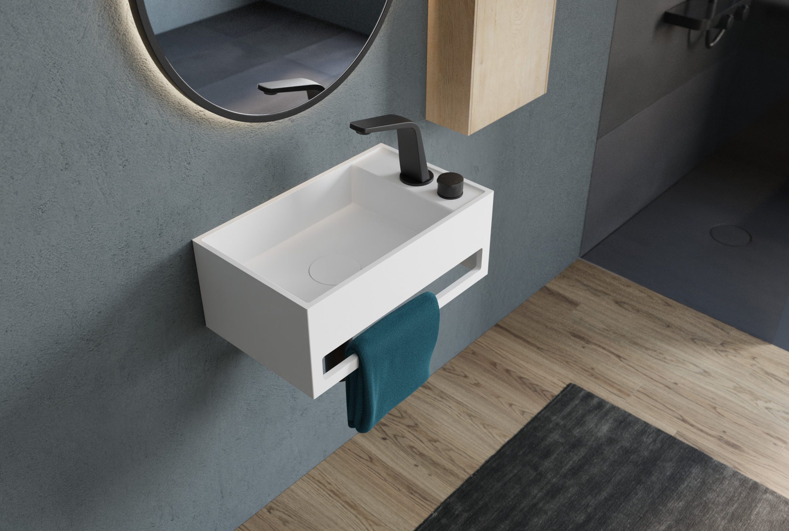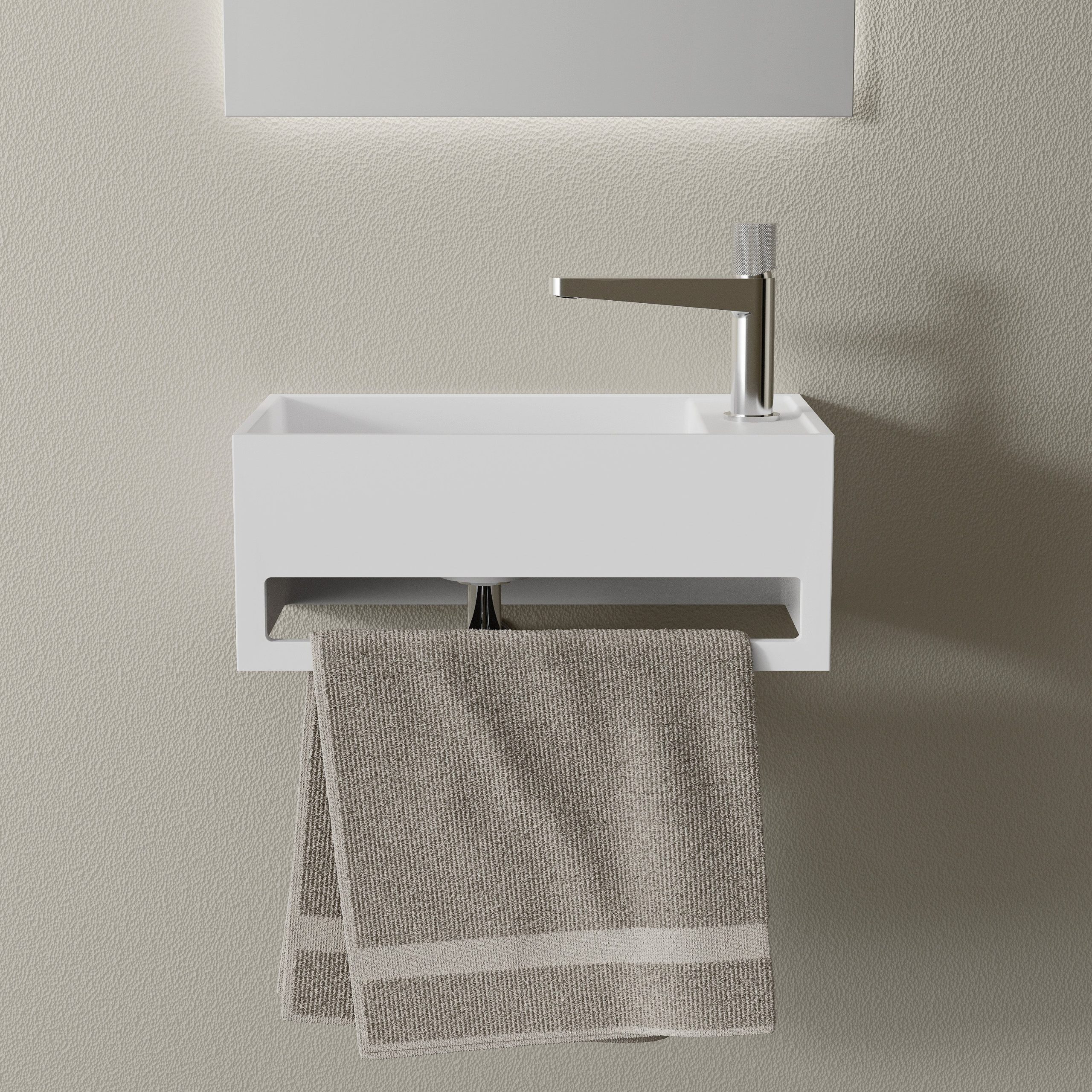 Wandwaschbecken PB2077 matt weiß aus Mineralguss Solid Stone – mit integriertem Handtuchhalter