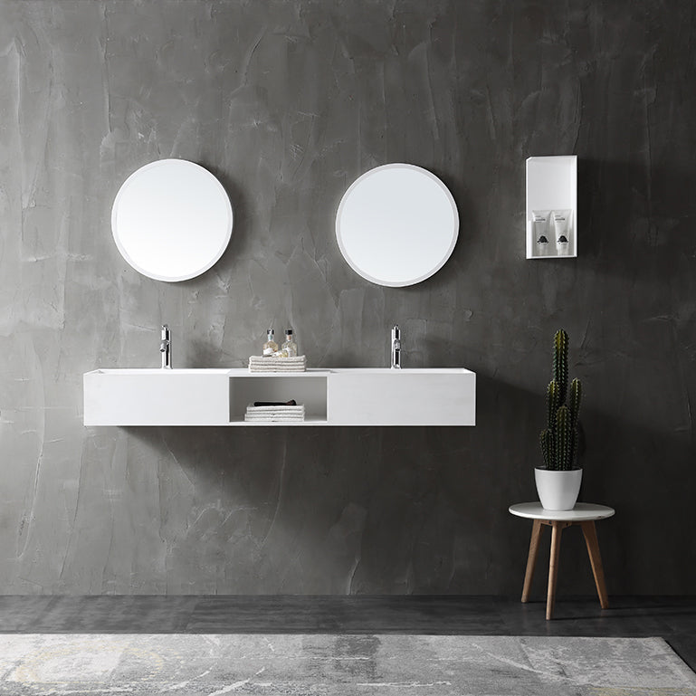 Doppelwaschtisch TWG235 aus Mineralguss Solid Stone – Weiß matt – mit Ablagefach und Ablagefläche
