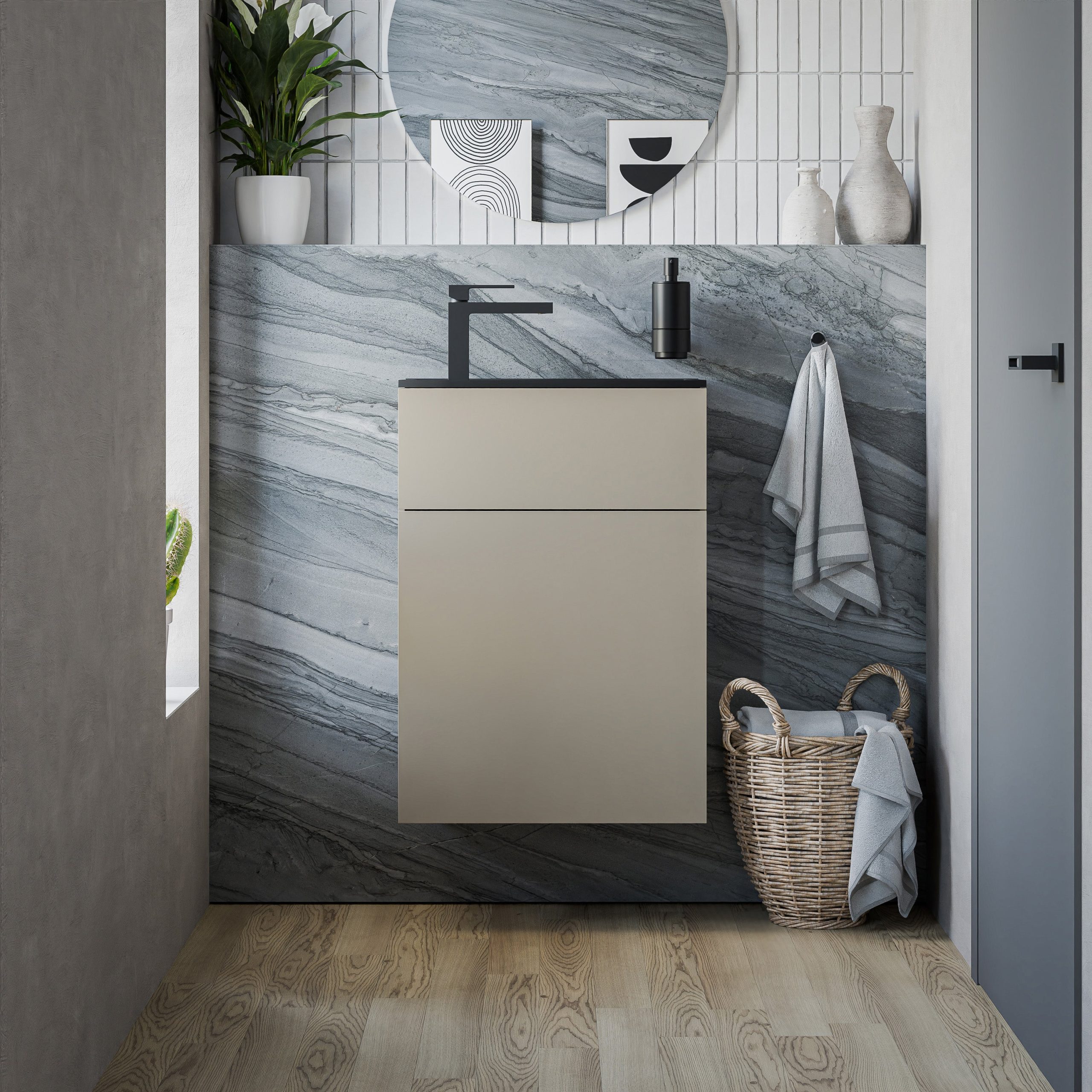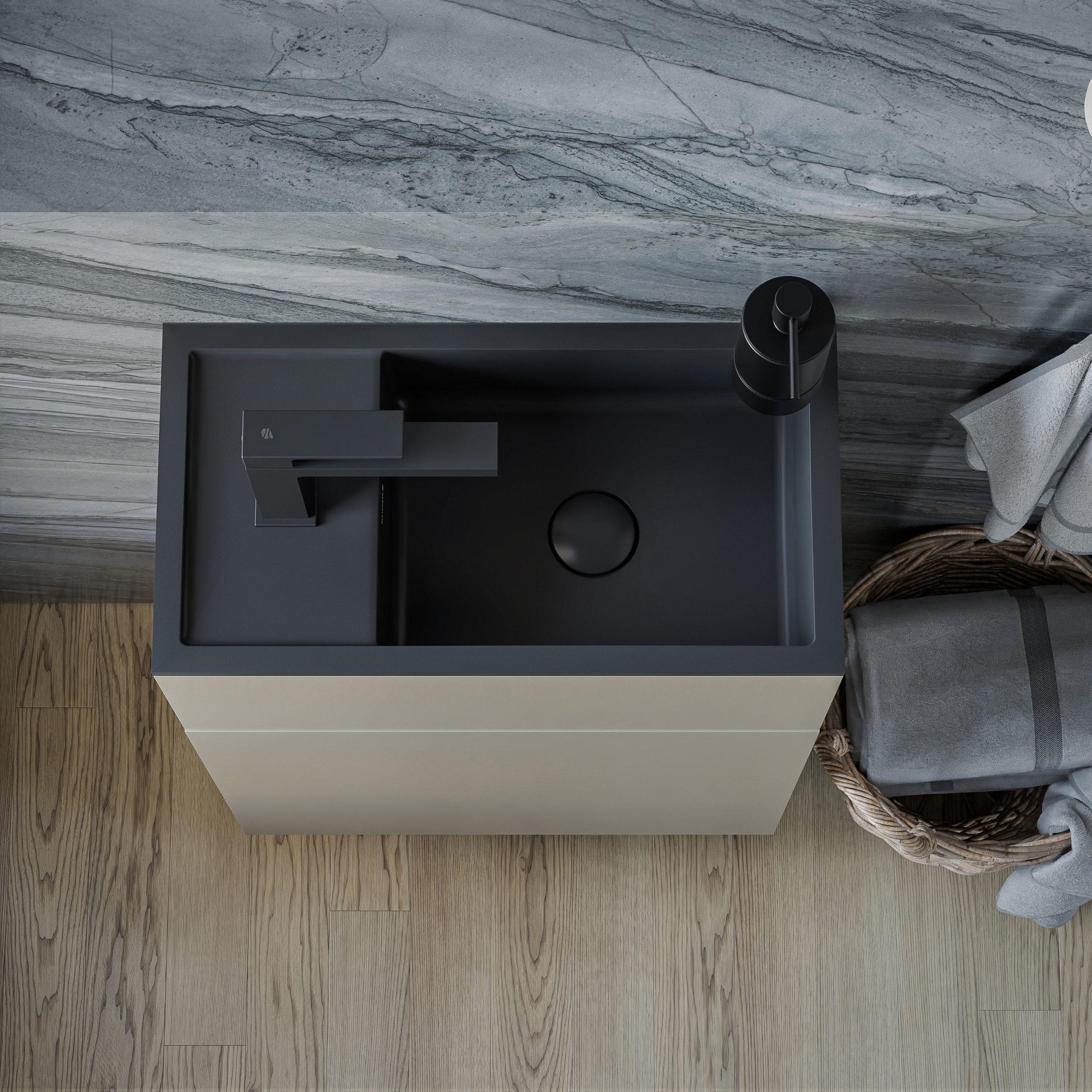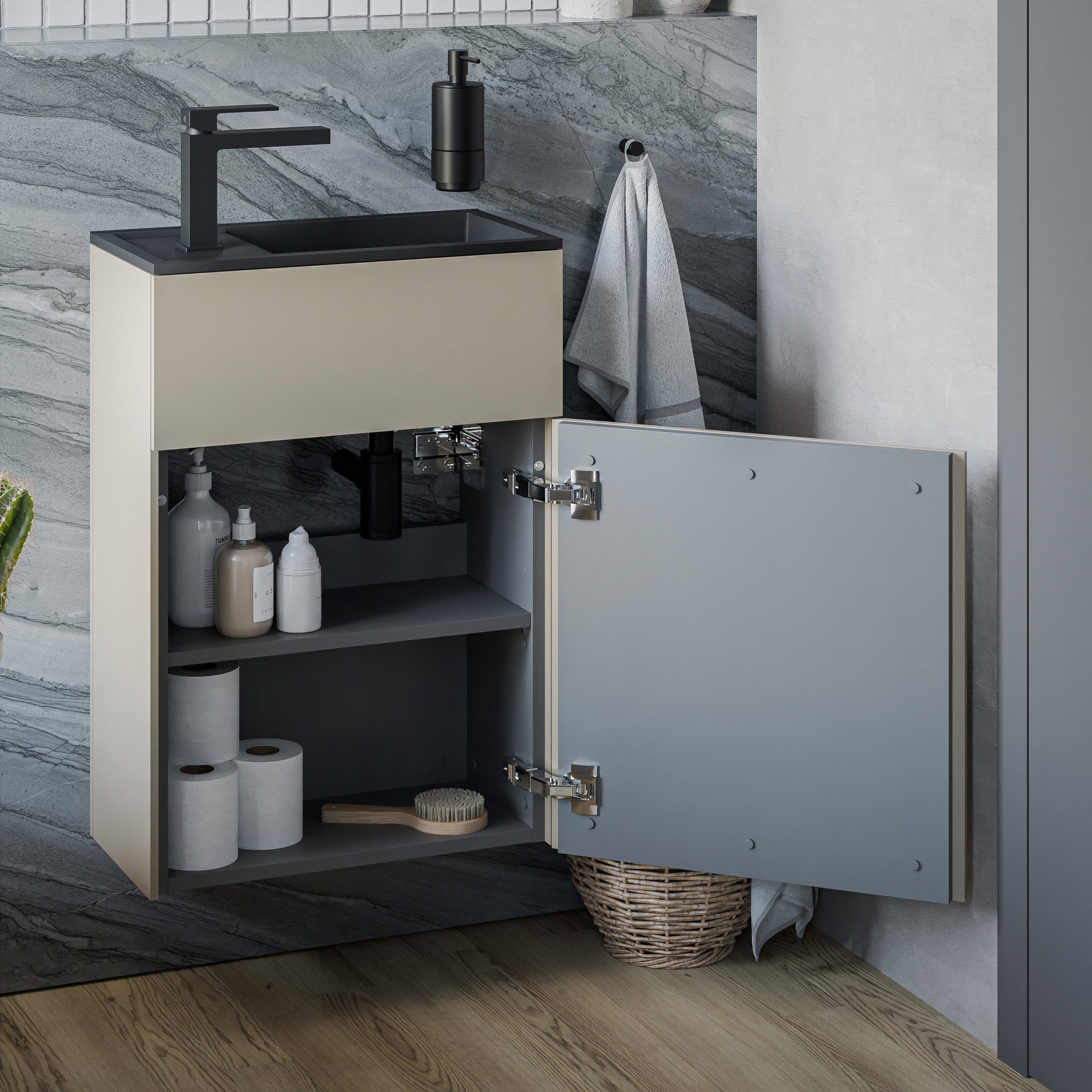 Waschbeckenunterschrank KONDA 50 cm mit Waschbecken – Türanschlag rechts – Farbe wählbar