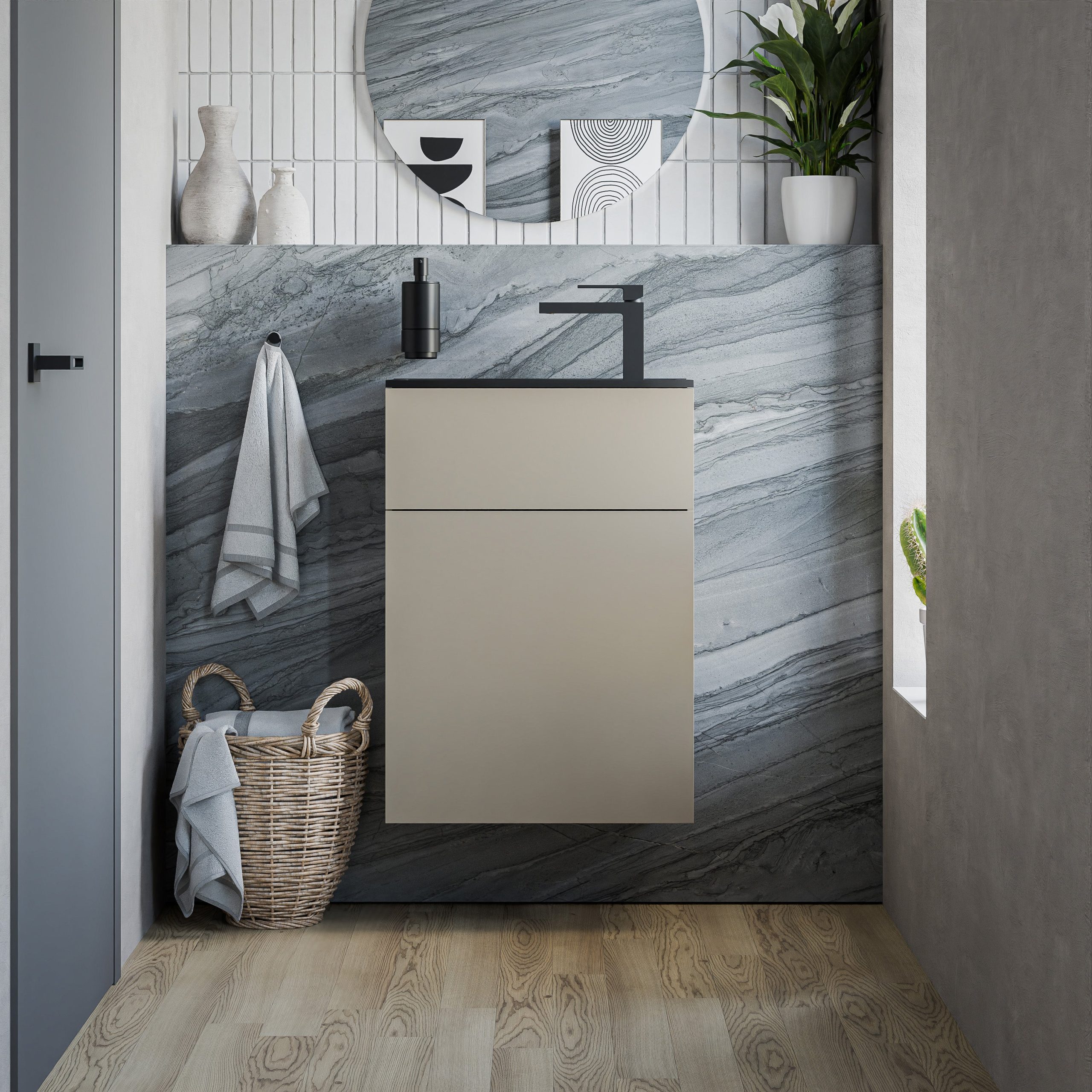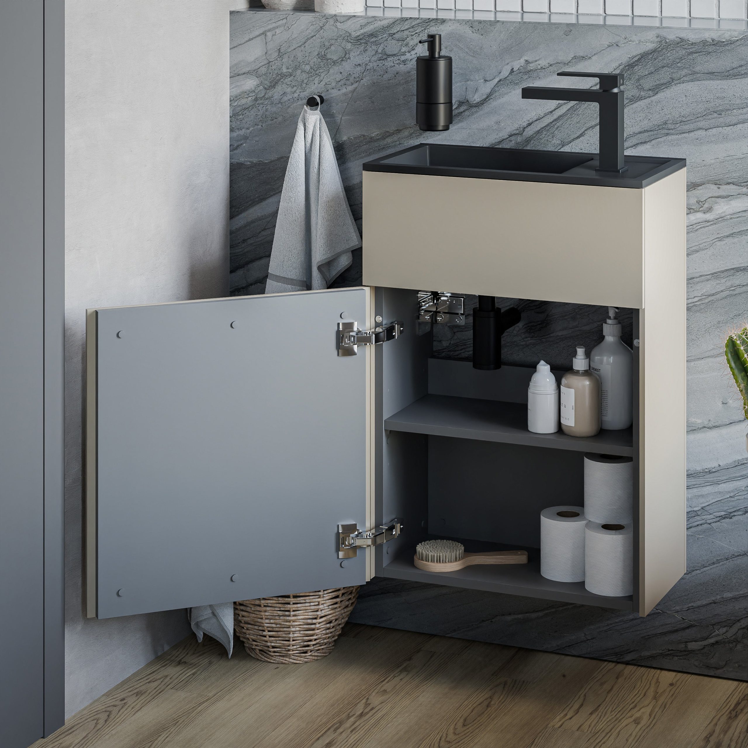 Waschbeckenunterschrank KONDA 50 cm mit Waschbecken – Türanschlag links – Farbe wählbar