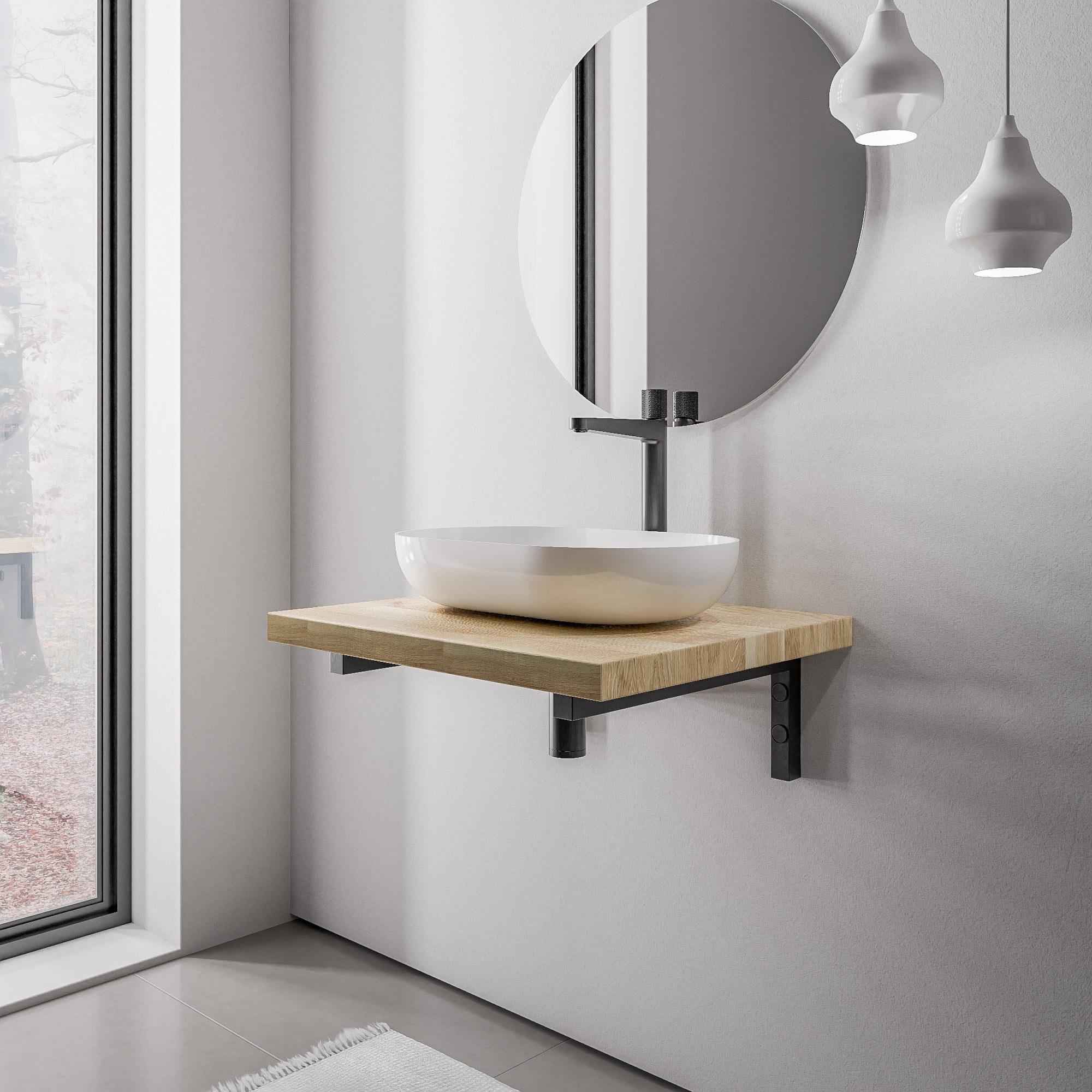 Waschtischplatte PUREWOOD Eiche Massiv mit Konsolenträger – Breite wählbar