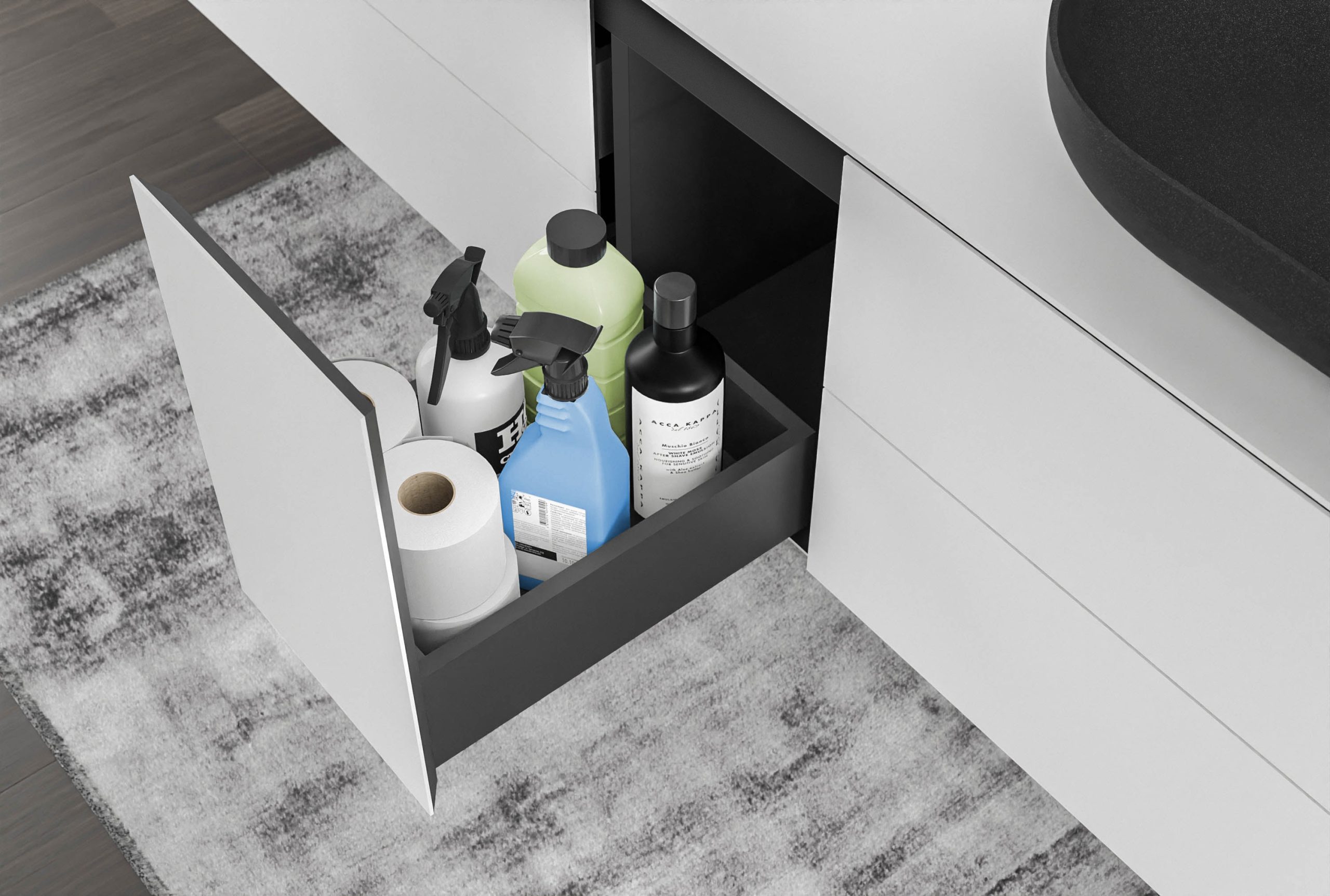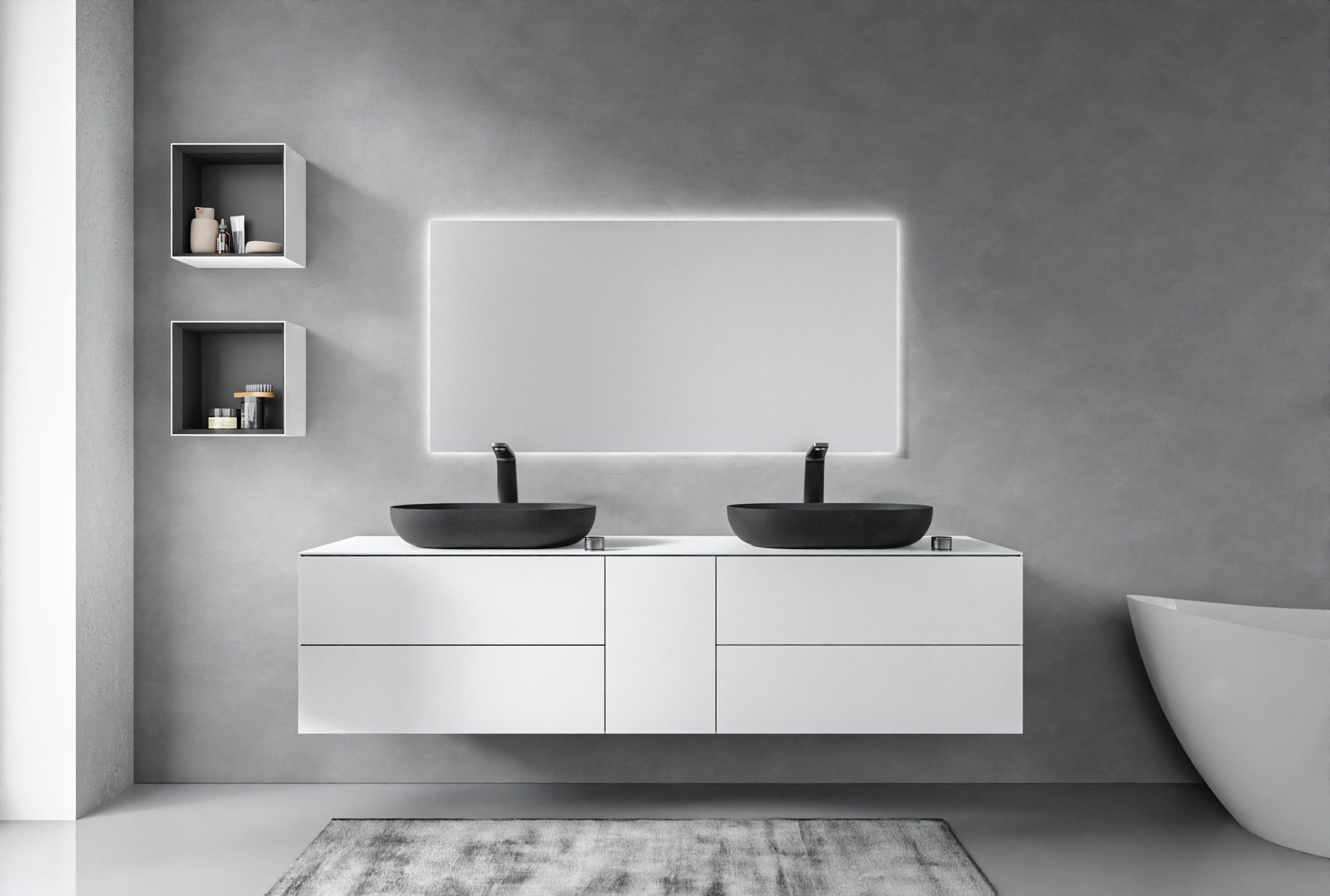 Full-Size Waschtischunterschrank ARCTIC 1800 Weiß Softtouch für Aufsatzwaschbecken