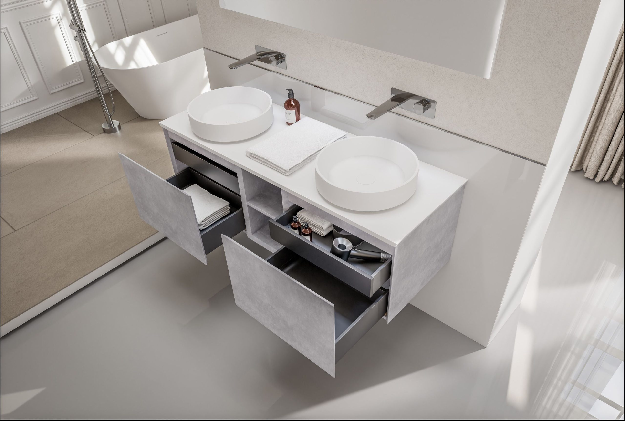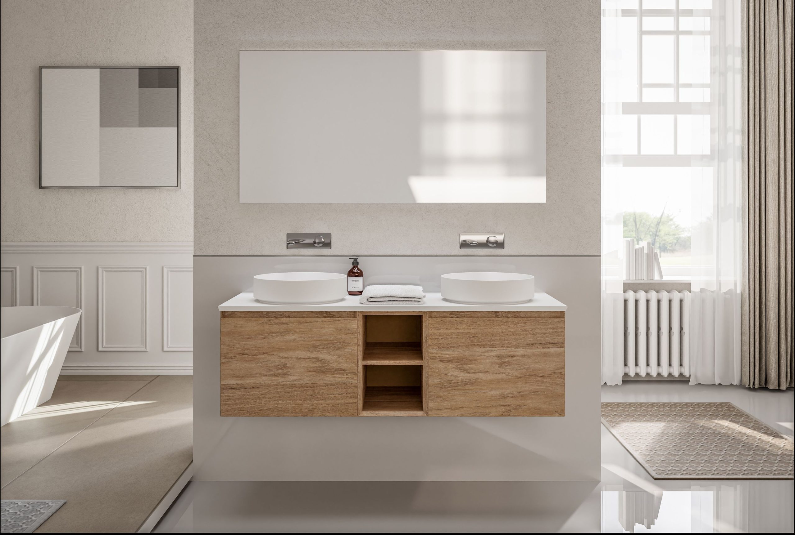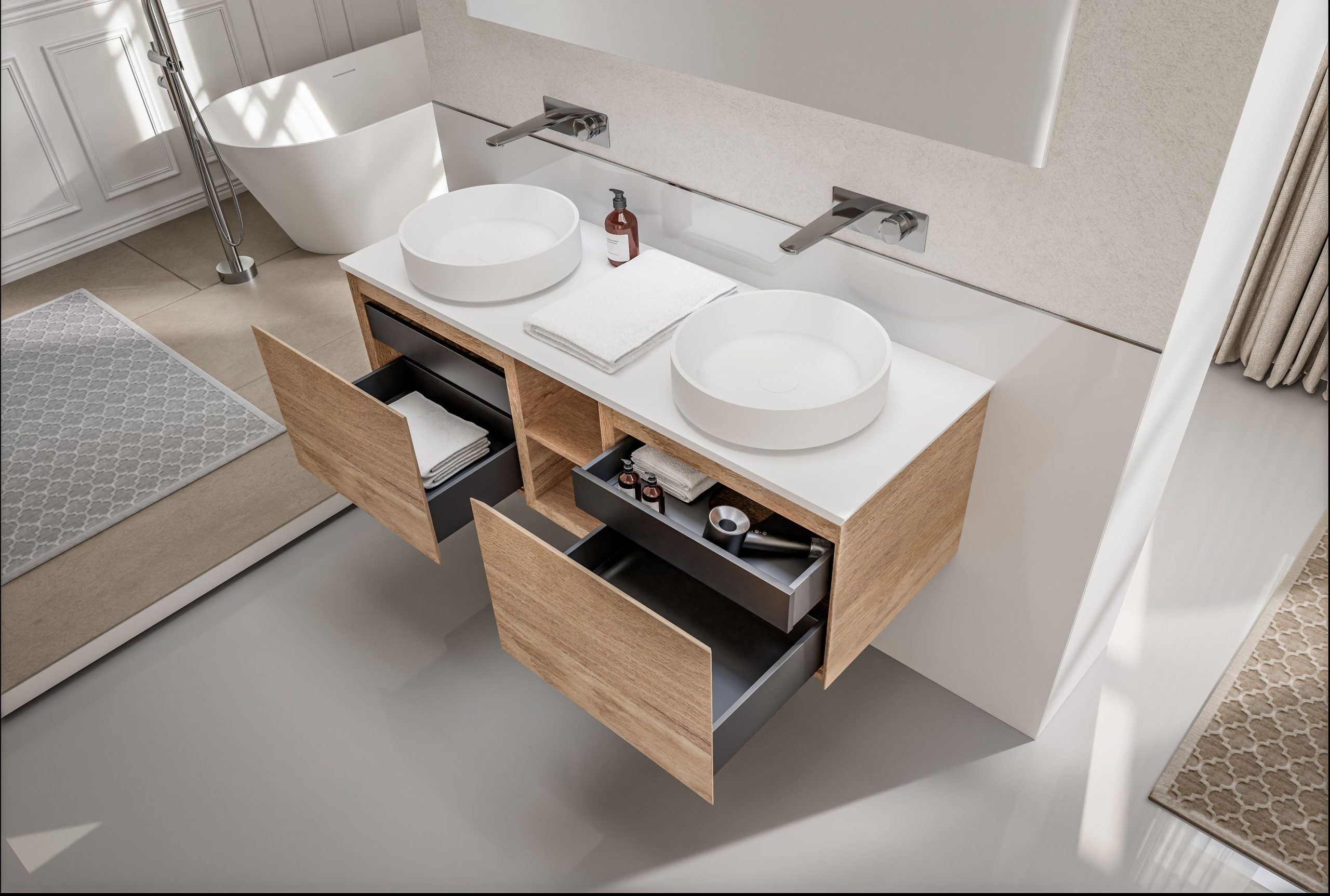 Badmöbel-Set INALCO 1500 Open Storage – Geräumiger Waschtischschrank in diversen Farben