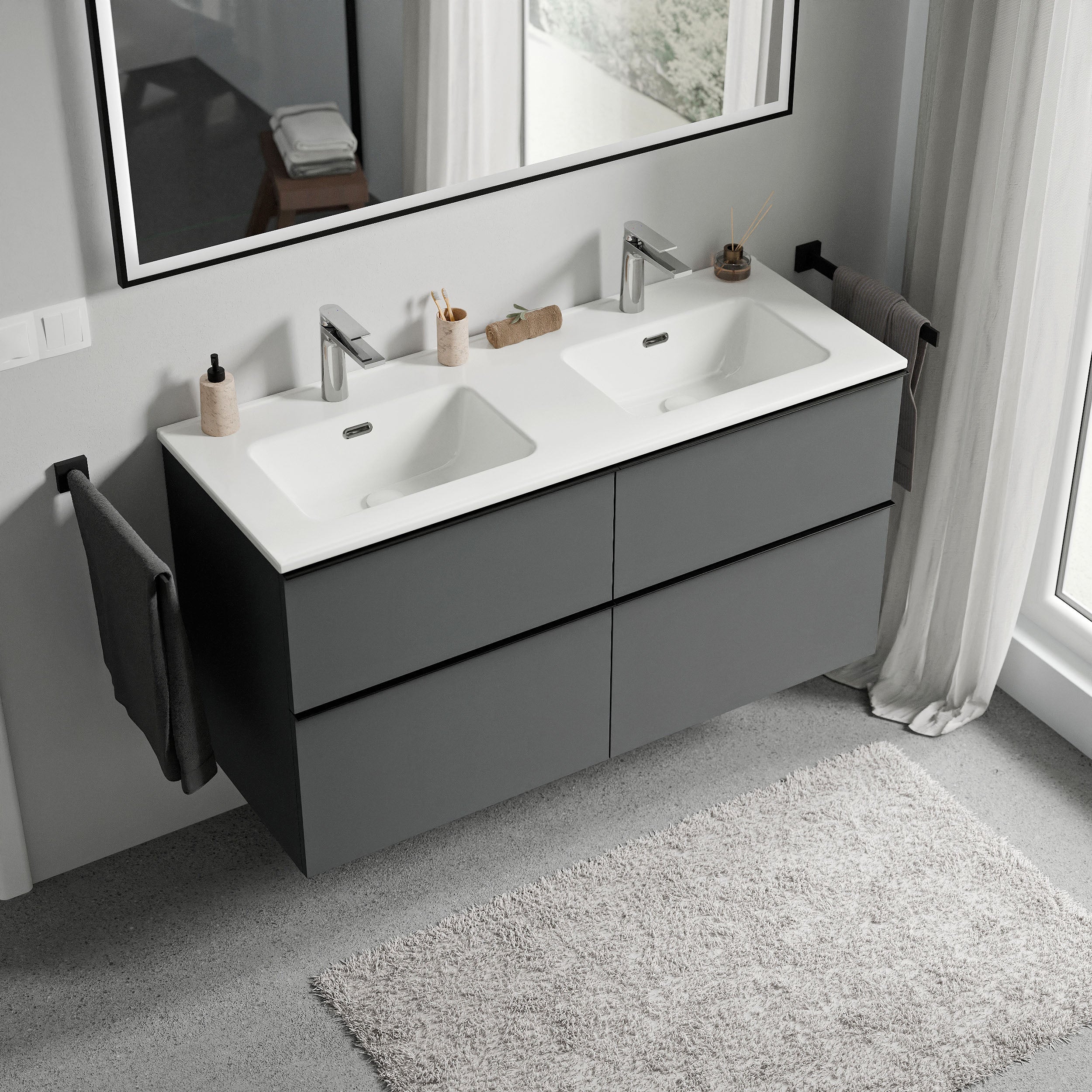 Waschtischunterschrank LAVOA 120cm mit Doppelwaschbecken – Farbe wählbar