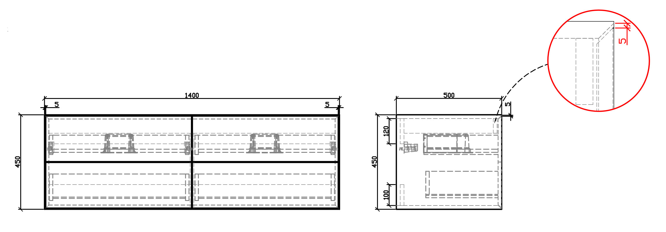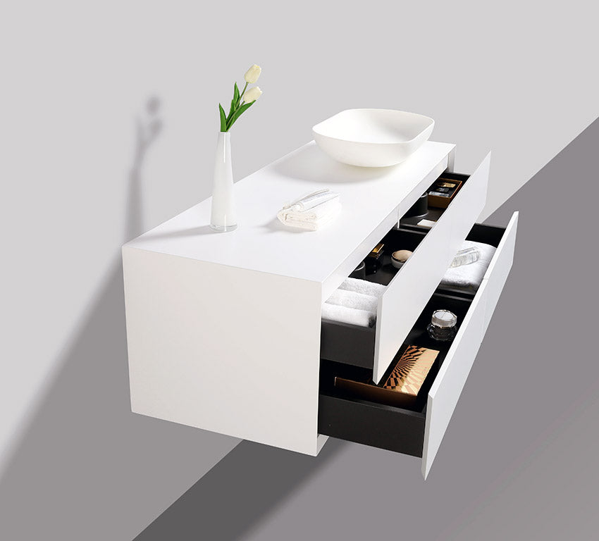 Badmöbel Waschtischunterschrank Milou 140 cm Weiß matt für Aufsatzwaschbecken