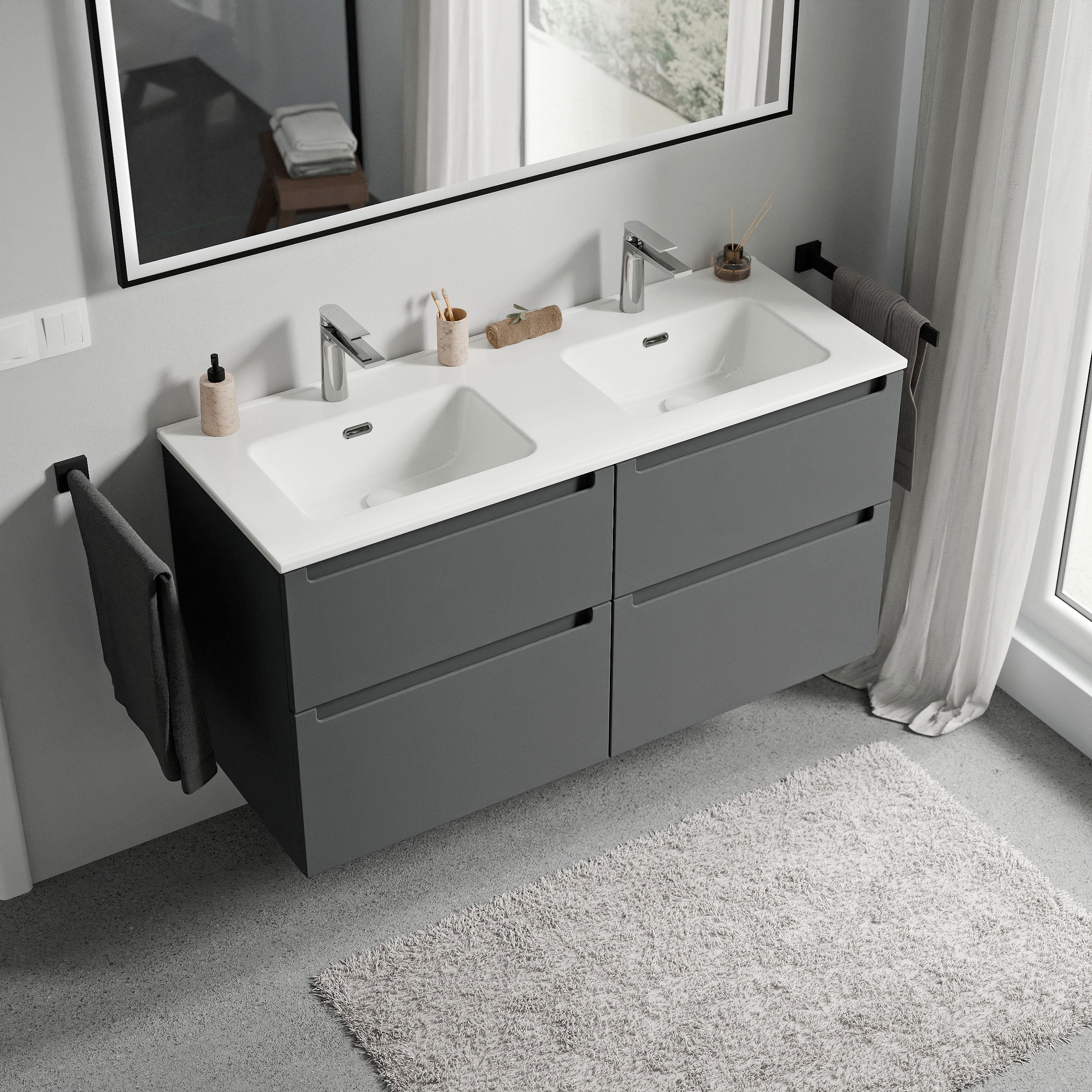 Waschtischunterschrank VIREO 120cm mit Doppelwaschbecken weiß – Farbe wählbar