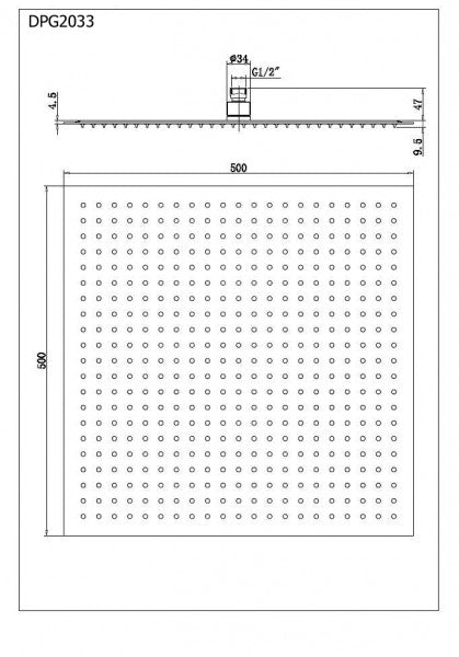 XXL-Regendusche Edelstahl-Duschkopf DPG2033 superflach – 50 x 50 cm
